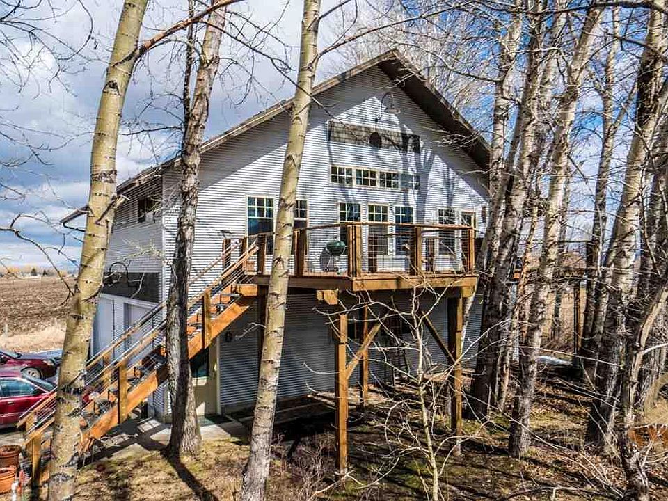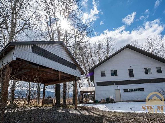 Increasingly rare opportunity to own 3.24 acres in Bozeman with minimal covenants offering possible live/work opportunity. Home features 1408 sq.ft. finished, heated shop with 3/4 bath on main level with 2BR, 1BA, living quarters above. Living space features nice open floor plan, high ceilings with 2nd story deck. Dozens of mature trees provide privacy and shade. Solar power, covered exterior parking area, and detached sauna. Rental income from 2 mobile home lots on SE corner of property help with mortgage.