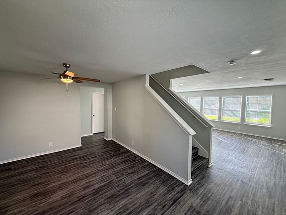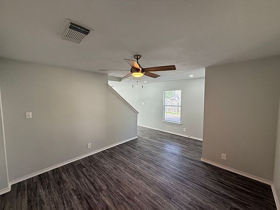 Updated two-story home with large front driveway, side parking, and electric gate for rear access. Offers 3 bedrooms, 2.5 baths, and an open floor plan with lots of natural light. Features laminate flooring throughout (no carpet), quartz countertops, stainless steel appliances, and a spacious kitchen island. All bedrooms and a loft area are upstairs. Oversized primary suite with walk-in closet and dual-sink vanity. Huge backyard and ceiling fans in every room.