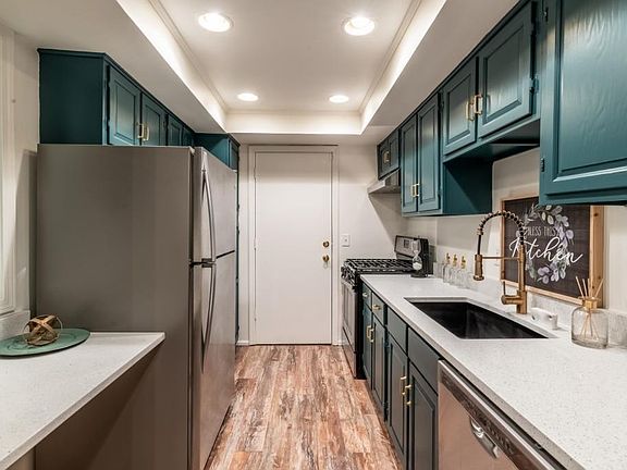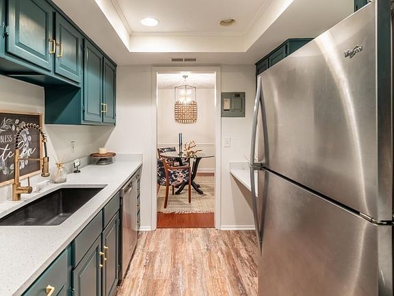Beautifully updated, large 2 bedroom, 2 bath condo in the heart of Sandy Springs. This top level unit boasts a gorgeous kitchen w/ green cabinets, white quartz counter tops, stainless steel appliances and a black farm sink This kitchen is over the top! This home has natural oak LV floors, fresh paint & designer lighting throughout. Above counter designer sinks in both baths for that added touch. Oversized owner's suite with barn door, en-suite bath with double vanity and white quartz counter tops. Owner's Ensuite has a huge walk-in closet. Great location, near Sandy Springs City Center and Abernathy Greenway & Park. This unit is truly unique. (Complex is not FHA approved).
