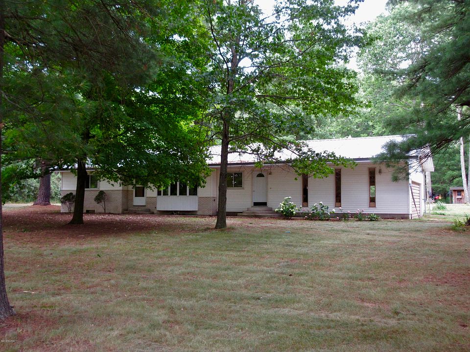Beautiful 6.4 acre country setting on a paved road between Blanchard and Mt Pleasant. This ranch has an open floor plan with beautiful new oak flooring in Living Room, Dining Area, Kitchen and extra room between garage and kitchen. 2 bedrooms, full bath with new maple flooring with laundry(washer and dryer included). French doors off Dining area to deck. 2 stall attached garage. 26 X 60 pole barn. Tree shaded yard, garden area, and wooded area. Newer roof and furnace.Attic insulation has an R value of 70 per owner. Possible 3rd bedroom could be incorporated into current floor plan per owner.