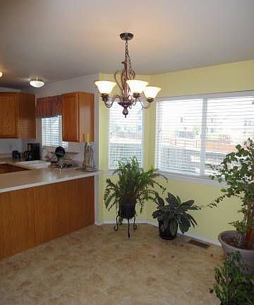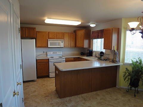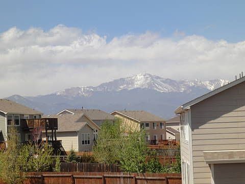 Great house with 4 bedrooms, 2.5 baths and a beautiful view of Pikes Peak. Vaulted ceilings in the living room and a gas fireplace too. Fully finished basement with bedroom, family room and bath. master is large and has adjoining bath with double sinks and two more bedrooms. Kitchen has built -in microwave and refrigerator. Eat in counter bar and dining area are nice and bright. Backyard is fulloy fenced and has a gate to the greenbelt and walking trail to Cottonwood Creek.