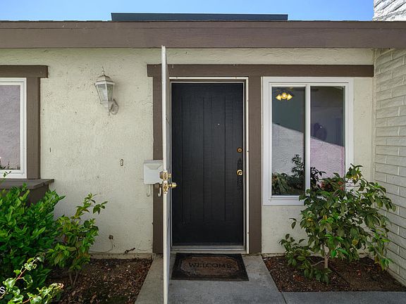 Welcome to 6852 Blue Ridge #57! Tucked away at the end of a tranquil cul-de-sac, this charming 2-bedroom, 1-bathroom home offers an inviting retreat in a convenient location. As you enter through the front door, you're greeted by a spacious living area with vaulted ceilings, laminate wood-like flooring, and a cozy brick fireplace. Natural light floods the space through dual-paned windows, creating a warm and inviting ambiance. A sliding glass door leads to the back patio, where a pergola provides shade for outdoor relaxation and entertaining. The living room seamlessly flows into the dining room and kitchen, making it perfect for gatherings and everyday living. The kitchen boasts recessed lighting, a gas range, refrigerator, microwave, and a tiled, movable island, offering both style and functionality. The full bathroom features tile flooring, stone countertops, and a dual sink vanity. Conveniently accessible from both the hallway and the primary bedroom, it offers comfort and privacy. The primary bedroom is generously sized and features dual-pane windows, a ceiling fan and light system, and ample closet space. The second bedroom also offers comfort with dual pane windows, a ceiling fan and light system, and a spacious closet. Access to the attached 2-car garage is conveniently located near the living and dining area, providing ease and convenience for everyday living. In addition to the delightful features of this home, residents also enjoy access to the association swimming pool and clubhouse, courtesy of the HOA. Don't miss your chance to make this wonderful property your own. Come experience the comfort and convenience of this fantastic home!