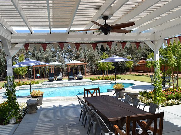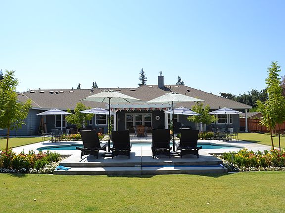 Just beyond the security gate and private drive, this secluded 1.04 acre country home boasts custom landscaping, a variety of fruit trees and a lovely vineyard (all on drip irrigation). The large outdoor patio and pergola make the gorgeous pool with sheer descents the perfect place to entertain. Upon entering the home you will be charmed by the hand scraped wood floors and gourmet kitchen complete with granite counters, brick back splash, Kitchen Aid appliances including a five burner gas cooktop and double oven. Two amazing walk in pantries! The bonus room can be tailored to your family needs. The beautiful gas fireplace surrounded by built ins, warms the main living areas and provides a cozy place to read a book. When it's time to unwind, you will enjoy the generously sized master suite with two closets and bath with a large soaking tub. This home is the entertainer's dream...a piece of paradise. Located in the award winning Clovis School District.