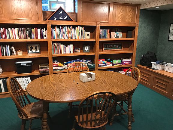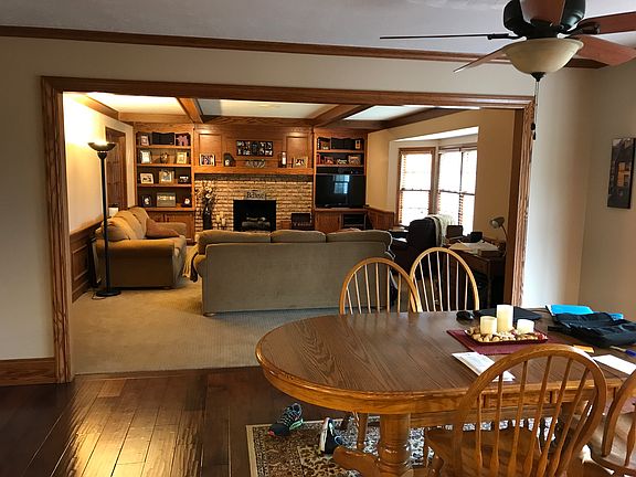 Large family home located on a flat lot with a golf course in back yard. 3 car garage with stairs into basement. Basement has over 1000 sq ft finished including a library and theater room ( with fireplace) with an additional 500 unfinished storage and mechanical space. Open concept Cherry kitchen, informal dining, sun roon (with fireplace), and family room with fireplace).