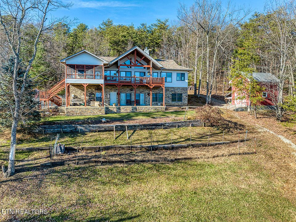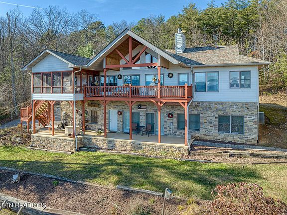 Looking for a magnificent view of the Great Smoky Mountains then look no further! This view changes daily. Very private home on 3.75 acres. Main level boasts an inviting kitchen open to the dining and living room. Master bedroom w/large walk-in closet, soaking tub, and direct access to hot tub on covered deck. Also on the main level is a guest room, full bath and laundry room. Kitchen countertops are granite, large island, pantry and a 25 X 30 dumb-waiter from garage to kitchen. Basement consists of a large family room,w/fireplace, kitchenette, bedroom, office and full bath. Two large storage closets, and a 2 car garage as well. Workshop has electric, water, sink and toilet with its own septic. Top floor is finished. New roof in summer of 2023. Top of the World Community has an amazing private lake for fishing,swimming, kayaking, no gas motors allowed. The pavilion has a boat launch, pickleball, and basketball courts. Also included is a whole house generator and Kabota tractor. Pre-qualification and/or proof of funds letter is required with all offers.