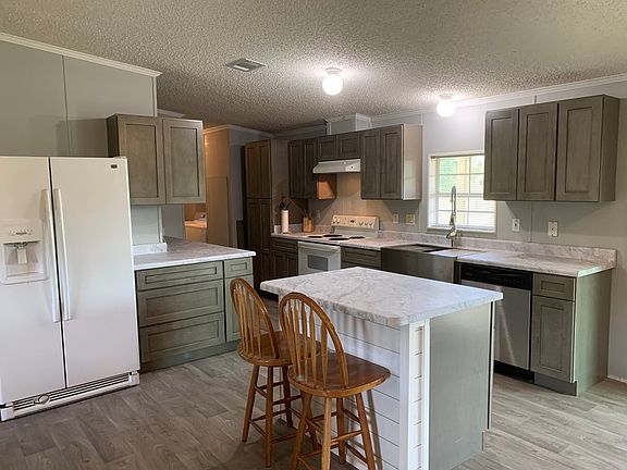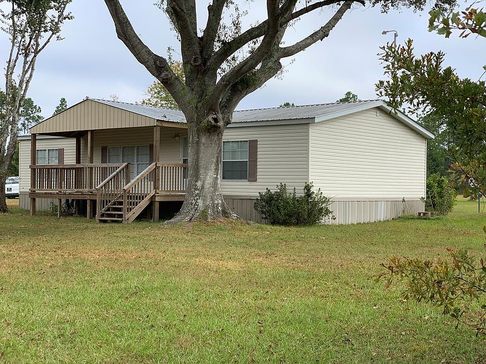Back on market due to financing issues; therefore, preapproval letter required with offer. Let your imagination run wild with this 4-acre parcel (if you want additional cleared 4 ac next door it is available, for added cost) that has been cleared and in an x flood zone with only county restrictions. This parcel not only contains a move in ready doublewide mobile home; with a new kitchen, open floorplan, with split bedrooms, covered front porch, and a screened in back porch but wait to you see the yard. This cleared 4 acre plot also boast a greenhouse, storage building, and an enclosed garage with dimensions of 25ftX80ft containing a 12ftX12 ft roll up door with a covered open concrete slab in front and another garage door on the right side. A small area for grilling outside the back porch and lots of privacy. Come see for yourself!!!