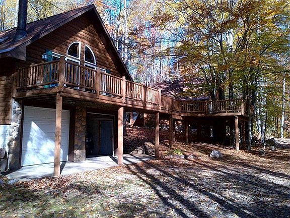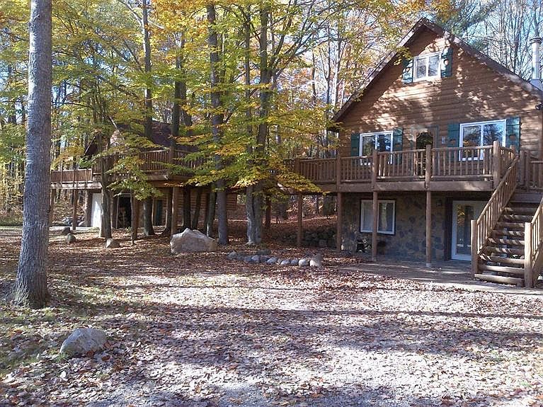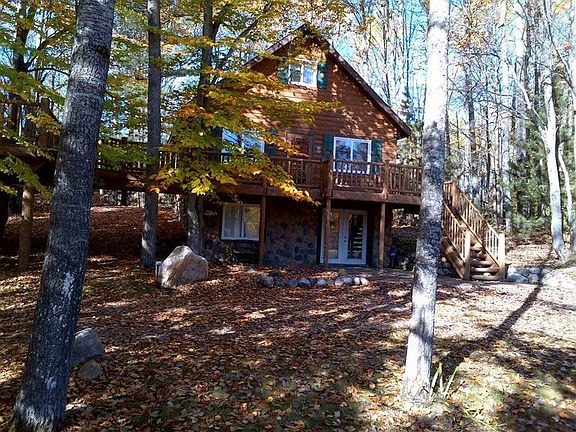 A unique opportunity to own 2 log and stone cabins in the beautiful Lakes of the North. The homes are connected by a cat walk with large deck and situated on 4 lots, giving you a very desirable opportunity. The main house has been in the vacation rental program which gives you rental income when your not using the home and still leaves the smaller home for your exclusive use. Homes come with all appliances and some furniture. Lakes of the North offer numerous amenities which include a clubhouse, pool, lakes/boat use, golf course, horse stable, restaurant, airstrip, winter center ( with x country skiing and skating ) and DNR snow trails. Looking for a place to get away ? This is a must see !! Owner is a licensed Real Estate Agent in Michigan.