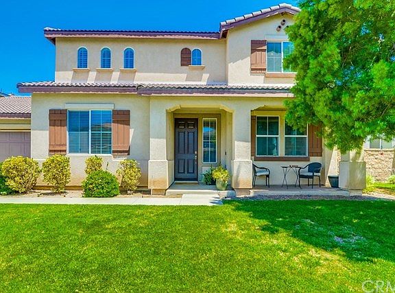 Pool home in Eastvale! Exceptional living with significant upgrades is what awaits you in this Eastvale home. Upon entrance you'll be greeted by the formal living room and dining room, next adventure into the family room and kitchen. This chef's kitchen features include: newer appliances, complete with a one-touch sink faucet and single bowl farmhouse sink, white stone island and counters top with glass back splash, wood cabinets, walking in pantry, a computer work station. The adjoining family room contains surround sound speakers, built in entertainment center and a fireplace. The sliding door in the kitchen opens to the backyard with a salted water with pebble tec bottom swimming pool with a spa and a barbecue island. Back inside you'll find a bedroom with builtin cabinetry, a full size bathroom. Going upstairs there is a loft, three additional bedrooms, a full size bathroom. The large master bedroom with sitting/office area, his and hers sink, walking closet. A four car garage, and much more. Located in a quiet cul-de-sac and walking distance to award winning schools.