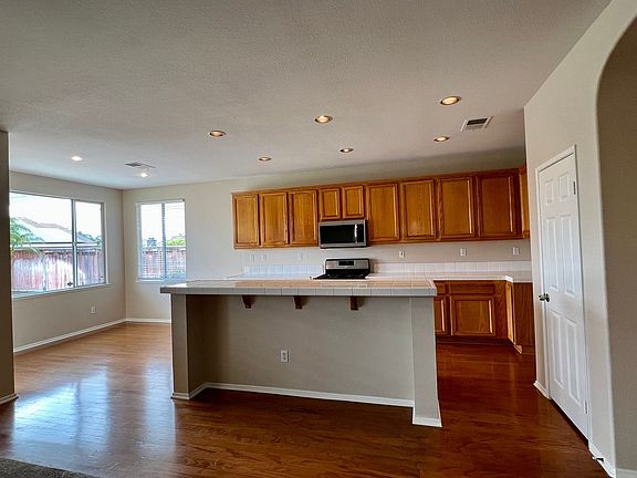 Great Single Story Home in Eastvale, 3 Bedroom Plus Office 2 1/2 Baths, Beautiful Hard Wood Floors In The Entrance, Office, Bathroom, Kitchen and Halls, Open Kitchen to Family Room and Eating Area, Fireplace in Family Room with Shutters, Large Master Suite with Mirror Closet Doors and Walking Closet, Fully Landscaped Back Yard, Gas Connection for BBQ, Lighting Sconces on Patio Cover, Cement on Both Sides of Home, Super Clean Home with 3 Car Garage.