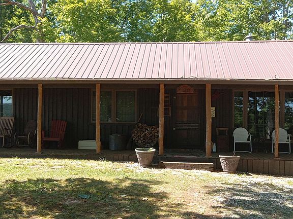 This secluded retreat, nestled on 3 wooded acres, offers a serene escape from the hustle and bustle of everyday life. The property features a harmonious blend of rustic charm and contemporary design, centered around a spacious main cabin and a charming tiny guest cabin. Both cabins are thoughtfully designed to create a tranquil sanctuary amidst the natural beauty of the surrounding landscape. Main Cabin: The main cabin welcomes you with a grand great room, highlighted by a stunning cathedral ceiling with exposed wooden beams that add a touch of rustic elegance. Sunlight floods the room through expansive windows, illuminating the space and offering breathtaking views of the wooded surroundings. A large stone fireplace serves as the room’s focal point, providing warmth and a cozy ambiance that makes it a perfect spot for relaxation. Adjacent to the great room, you'll find a spacious kitchen and den area, designed for both culinary delights and intimate gatherings. The kitchen complements the cabin’s aesthetic with modern amenities and a layout that encourages social interaction. The den area features comfortable seating, earthy textures, and warm, inviting colors that create a cozy space for unwinding and enjoying the serene environment. The main cabin extends its living space outdoors with two inviting porches. The first porch is ideal for enjoying morning coffee or evening tranquility, equipped with rocking chairs and a small table for a peaceful connection with nature. The second porch, larger and more sheltered, provides an ideal setting for al fresco dining or hosting intimate gatherings, with scenic views of the surrounding wooded property. The main cabin also includes a comfortable bedroom, a bath, and a sleeping loft, offering plenty of space for rest and relaxation. Tiny Guest Cabin: A short walk from the main cabin leads to the tiny guest cabin, set on a separate lot to ensure additional privacy and seclusion. This 288-square-foot retreat features a cozy 24 x 8 front porch that opens into a 17 x 12 living area with a vaulted ceiling, creating an airy and welcoming atmosphere. Inside, the guest cabin is equipped with a compact kitchenette, a bathroom, and a loft sleeping area, making it a perfect, self-contained retreat for guests. A back porch, measuring 12 x 11, offers another space to relax and enjoy the quiet ambiance of the woods, providing guests with a serene outdoor retreat. Overall: This private getaway blends comfort and seclusion, offering a perfect balance of indoor luxury and outdoor living. Whether you’re seeking a weekend escape or a longer retreat, this property provides an ideal setting for relaxation and rejuvenation amidst the natural beauty of its 5-acre wooded surroundings. It’s a sanctuary where you can unwind, recharge, and truly connect with nature.
