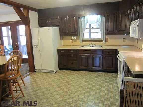 Commune with nature on a 2.78 acre private, wooded lot. Situated in the Colonial Heights neighborhood off a side street and located in between State College & Huntingdon. There's plenty of room to entertain inside and outside. The dining room is open to the kitchen and has French doors to the screened-in porch. The living room has a big picture window looking out onto the spacious front yard. Downstairs there's a family room with a fireplace, as well as an office that could double as a guest room, and a full bath. Upstairs you'll find three good sized bedrooms and two remodeled full baths with granite countertops. Storage abounds in the plentiful closets, unfinished basement, oversized garage, and in the shed. Many items have been replaced or updated, including the windows, roof, garage doors, well pump, bathrooms, and some flooring. The driveway, composite deck, radon system, water softener, woodstove and shed were also added. Close to State Parks & Lake Raystown!