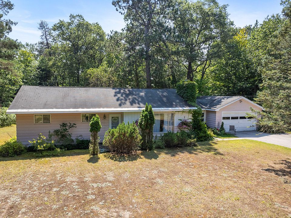 An absolutely beautiful 1.4 acre parcel provides lots of elbow room for this 3 bedroom 1.5 bath frame built home. It is an older home but has been very well cared for. An attached garage with a big breezeway makes winter time a snap for entry and exit. Add a full basement, fireplace, shed and a great garden area with apple trees to the features of this home. Wildlife viewing of deer and turkeys can be seen. It's all right here, close to both the Sturgeon River and the famed Inland Waterway. Natural gas, high speed internet and a paved drive round out the perks of this lovely Indian River home. NOTE: the backyard goes all the way back close to the chain link fence. Orange ribbons are approximate. Seller is a licensed realtor.