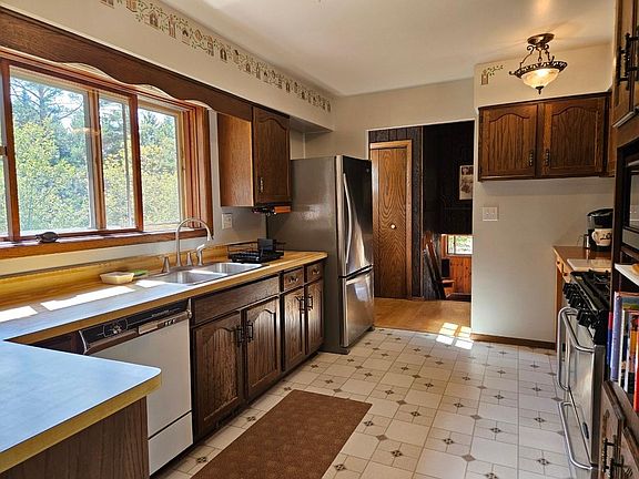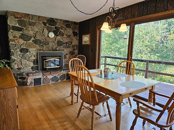 This well-maintained property offers a private, partially wooded, 6-acre setting with 550 feet of Wisconsin River frontage, along with several ponds. A welcoming entrance leads to the spacious living room with woodburning stove. Up several stairs is a large dining room with gas & stone fireplace & patio doors leading to a deck on one side & a river-facing, enclosed, 3-season porch with vertical track vinyl windows/screens on the other. The efficient kitchen is a few steps away from a half bath & entrances to the back yard & front of the home. Up another few stairs are 2 bedrooms, one with a huge walk-in closet, & a full bathroom. Down a few steps from the living room level is the unfinished basement with laundry & utilities. A heated workshop with 10-foot high ceiling was built in 2008 & features an overhead garage door & a heated studio above. There is also a 2-car garage, storage sheds, a fire ring, roll-in pier & apple trees. The property provides for abundant wildlife viewing!