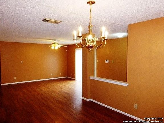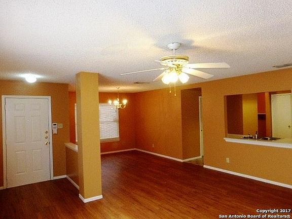 One story home with open floor plan, neutral color scheme and wood laminate flooring in living and dining room. Lots of cabinet and counter top space in kitchen. Located near Fort Sam Houston, Randolph AFB and Major Highways, Shopping and Eateries. Pets Considered on a case by case basis.