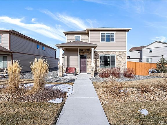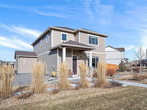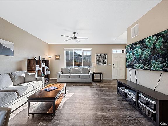Patio home style living with 3 car garage with close proximity to highway, hospital and Downtown Parker. 3 Bed, 3 Bath, 1,540 sq. ft. No neighbor to the North. Private front porch enters into open floor plan, luxury vinyl floors, gourmet kitchen featuring quartz countertops, abundant cabinetry, pantry and stainless appliances. Bright, natural morning light, neutral colors throughout home. Mountain views from guest rooms. Large primary bedroom facing East with oversized walk-in closet. No basement. NEW Roof 2023. Zero maintenance, private 6' fenced side yard with hot tub slab perfect for dining set or your new hot tub. HOA mows front yard and common sides outside fence. Parker Core Knowledge School & Vogel Memorial Park just blocks away.