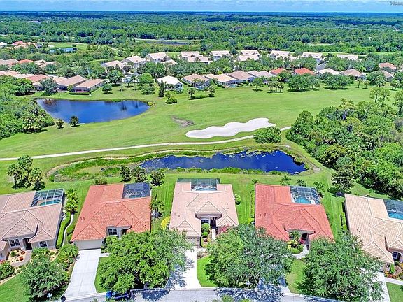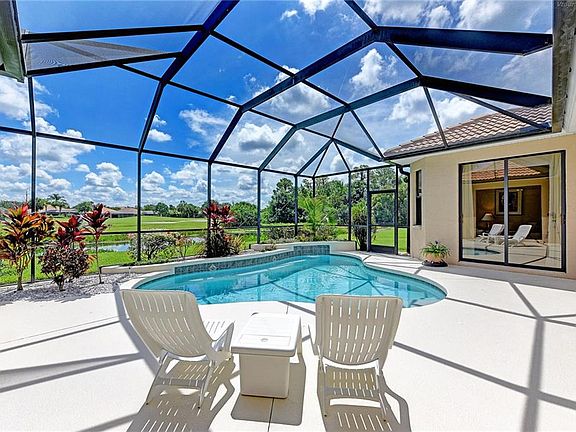Tara Preserve. No Golf Membership Required! Excellent opportunity for a 3BR plus Den or Bonus Room, 3BA, heated pool home. This Lee Wetherington quality built and customized Savannah plan sits on a spectacular Lake and Golf course site. The great room plan features rich architectural details like step ceilings, decorative niches, built-in entertainment center, and extensive crown molding. Gourmet kitchen has beautiful granite counter tops, cook top, built-in oven, custom cherry wood raised panel cabinets, under cabinet lights, and decorative back splash. You will also find a walk-in pantry and huge aquarium window overlooking the pool area and the lake beyond it. This split plan has a large Master Suite with extended sitting area, 2 walk-in closets, and a spacious Master Bath. The 2nd bedroom is en-suite and could serve as a second master bedroom or very private guest suite. The back Den or Bonus Room has been extended by 2 feet. Other features include natural ceramic tile on diagonal throughout the main living area with decorative tumble marble in lays by the front door, in the master bedroom hallway, and in the master bath, fresh paint inside, built-in cabinets in the laundry room, newer A/C, outside built-in grill with sink. This well maintained home is move in ready. All furnishings are available with a separate agreement. This golf course community offers easy access to wonderful restaurants, prime shopping at the UTC Mall, and beautiful Suncoast Beaches. Call today for showings!