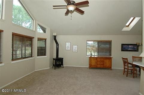 This 3bd/2ba, 1821sf home is an Absolutely Charming home on almost 3acs w/exquisite views of San Francisco Peaks. Wonderful floor plan that takes advantage of passive solar so that ones utility bills are very low. The gas fireplace makes it so that one doesn't even need heat during the winter days. This spacious home has an exceptionally large family room with high ceilings and lots of windows. Come and see all this property has to offer.