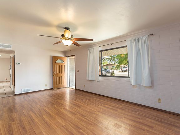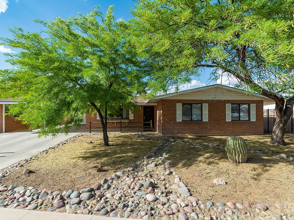 Great red brick family home, close to Davis Monthan and shopping, that is ready to move in with fresh paint and separate living areas. Newly remodeled main bath. Large island in kitchen which is connected to family room. Landry area has been remodeled with cabinet and counter top along with rod for hanging clothes. Covered patio with firepit which is great for outdoor dining. Backyard also has access to the alley behind. Large side yard for extra parking, possible RV. TEP strung new cable to house so owners could replace the original 100 amp wiring to 200 amp, fuse box and bringing up to code.