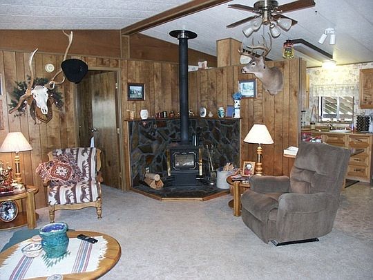 L8-EXCEPTIONALLY NICE 3 Bdr 2 Ba manufactured home on .17 Lot. Includes: Free standing wood stove w/lg hearth; elec FA furnace & vaulted ceilings. Home has covered front porch, lg covered deck off the back w/carport area and lg backyard w/privacy fencing + 1 car detached garage. $88,500 #20140742