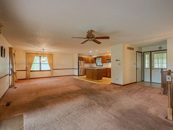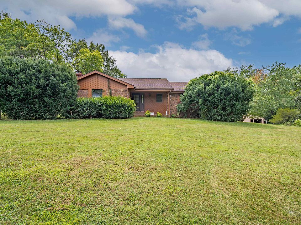 This property presents a rare opportunity to create your dream home! Owned by the same family for the past 40 years, this expansive brick ranch, nestled on nearly 5 acres, offers both space and potential. As you enter, you're welcomed by a spacious foyer that leads to an open-concept great room, dining area, and eat-in kitchen. The main level includes a full bath, a bedroom, and an office, providing flexibility and convenience. The walk-out basement adds even more living space, featuring a cozy family room with a wood-burning fireplace, two additional bedrooms, a shared bath, and a large laundry room. There is also an attached 1 car garage. Outside a 50 x 30 pole barn, and an attached lean-to offer ample storage and workspace, perfect for car enthusiasts or hobbyists. Don't miss the chance to make it your own!