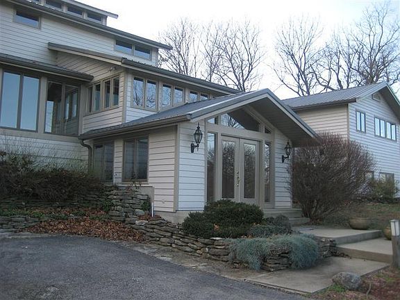 Drastic Price Reduction!!! 4BR, 3 BA Retreat nestled among 7.9 beautiful acres overlooking farm land. This stunning contemporary home is located in the heart of the Bluegrass only 7 minutes from I75. Exceptional features include a two story family room with amazing floor to ceiling fireplace, open great room with plenty of light filled windows & beautiful exposed beams. The master suite features a separate sitting area, expansive walk in closet & private deck! Journey to the second level with two bedrooms & baths all overlooking the open great room & family room below. Travel back to the main level with a modern kitchen & open dining area with gorgeous windows & views that you could only dream of! Travel outside to the two stall barn with storage area, a wonderful tree house overlooking the stream & plenty of room for your horse to roam. This is your dream come true! Recent updates include 13 ton 3 zone Geo Thermal HVAC, Refinished Hardwoods & 1/2 Bath.