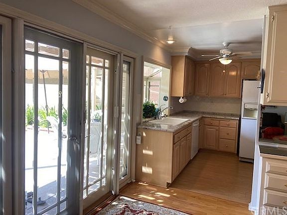 Cypress Village Gardens boosts this Beautiful 3 bedrooms, 2-1/2 baths, End Unit with 1,799 sq.ft. of living space! Entering the elegant front door there is hardwood flooring in the foyer which leads into the living room, family room and dining room. Looking out from the gorgeous French doors you have a beautifully landscaped patio with large flower beds full of plants and roses. The bay window brightens up the kitchen, has updated granite counter tops and the cabinets give it a warm feeling. All the bedrooms are upstairs with a full bathroom in the hallway shared by 2 bedrooms, both with mirrored closets. The master bedroom is quite spacious, has a large walk in closet with bright lighting. This home features highly desired end unit with Central Air, dual pane windows, copper pipping, sky lights, crown molding, fresh paint downstairs, scraped ceilings throughout, French doors w/sliders and the upgraded front door. The laundry room is situated in the kitchen, for your convenience & a bonus, washer, dryer & refrigerator come with the house! Cypress Village has beautiful greenbelts, 3 Pools, a huge Spa, Kiddy Pool, 3 Clubhouses, Tennis courts, Rec Room, highly rated Elementary, Middle & High Schools. Close to freeways, restaurants, Knotts Berry Farm, Disneyland, walking distance to shopping, parks, & more ! Turnkey.