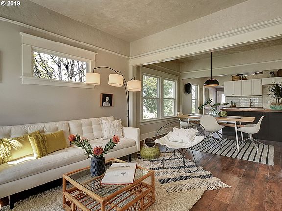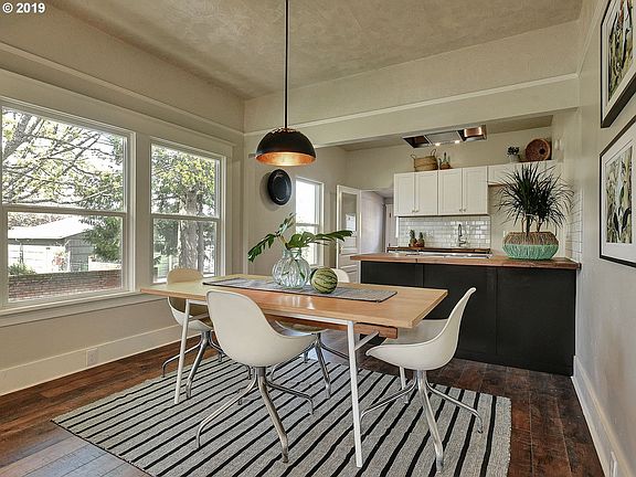 This fun Roseway bungalow is full of charming quirk! The open main living space features huge picture windows, soaring ceilings, and an updated kitchen. A finished basement family room and bonus attic play space provide lots of room to spread out. The detached garage would make a great workshop now and possible ADU down the line! All the work has been done here: new roof, windows, furnace, hot water heater, flooring, paint, and more. [Home Energy Score = 1. HES Report at https://rpt.greenbuildingregistry.com/hes/OR10090758]