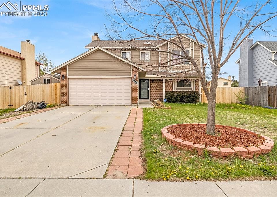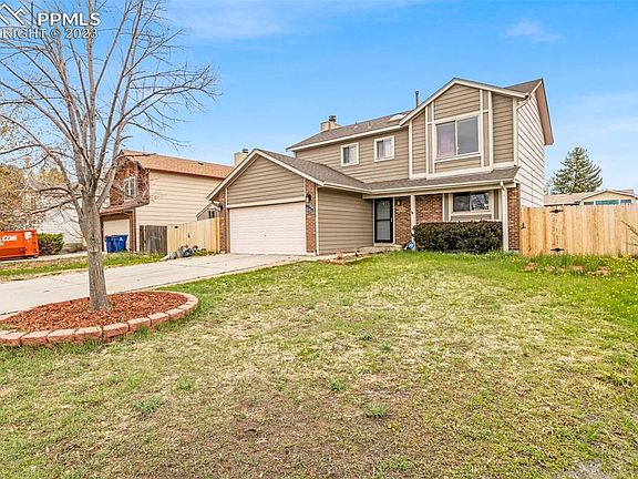 This home is located in the desirable Woodland Hills Village. On a cul-de-sac, with large backyard, new sod laid last year as well as a new fence. Beautiful raised garden beds, chicken coop and in ground trampoline. Great for entertaining. Great views of Pike's Peak. Large entry way with a sunken living room with gas fireplace. Large eat-in kitchen. As you go upstairs you will find a spacious master bedroom with adjoining bath. Two more bedrooms with a full bath. Finished basement that includes a laundry room. There is another bedroom and a room that can be used as an office or craft room. Even includes a nook for the dog. Perimeter drain and sump pump are located in the basement as well. This is a well laid-out floor plan. Home does need some TLC. Close to shopping and all the amenities of Cottonwood Park. This is a must see!