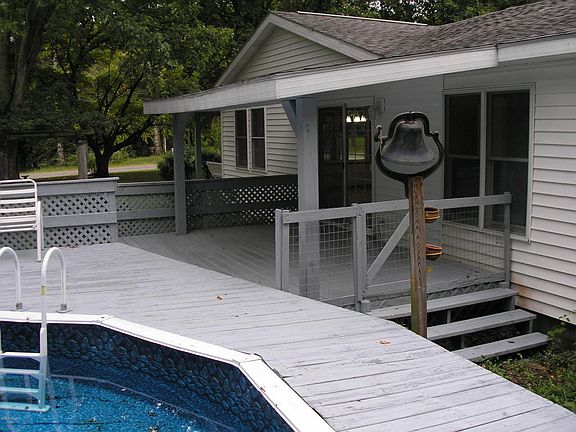 Large Ranch style home situated on 1.58 acres w/nice shade tree's offers many recent updates. The home is much larger than it looks and features nice size rooms with most having hardwood floors. Large living room, open concept kitchen w/new counter tops and appliances included. Dining area and family room or den/study. The master bedroom has a private master bath w/whirlpool tub plus a shower. There are 2 additional bedrooms & a full bath. The basement is partioned with 2 rooms finished that just need floorcoverings to complete. Hi-eff LPG furnace, new Central Air in 2017 plus an outdoor woodboiler included. Great 8'x48' covered front porch plus a 2nd covered porch off the kitchen sliding doors overlooking the above ground pool & deck. 2 car detached garage and good size yard.