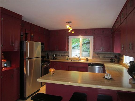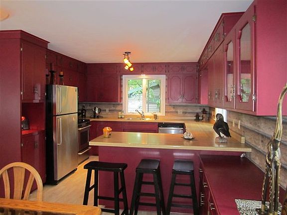 This home offers the view of beautiful sunsets from anywhere. 12x12 deck & aggregate patio will offer outdoor viewing. Open and spacious floor plan. French doors lead to bedroom. Boat house & gentle slope to the lake.