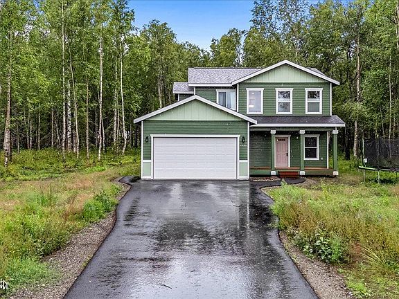 Gorgeous 2023 home w/ 3 car garage 2.5 baths, and all 4 bedrooms on 2nd floor with 0.92 acres. Kitchen has quartz countertops, walk-in pantry and kitchen island. Cozy up in winter to the gas fireplace with friends and family for the holidays. Primary bedroom with private bathroom and walk-in closet. Close to Wolf Lake Airport for pilots, and easy commute access to Palmer and Wasilla