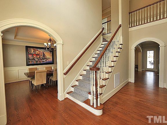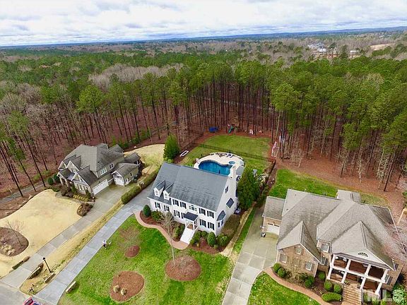 Over 6300 sq ft of luxury! 6 BR/5.5 BA custom estate home features detailed millwork and built-ins throughout. One of the biggest lots that backs to American Tobacco Trail and is located on a quiet cul-de-sac. Gourmet kitchen with granite counter tops . Screened porch. 1st Flr Guest Suite. Incredible yard for entertaining!! 2017 Gunite salt and UV water pool w/ spill over spa. 2,000 sqft patio & decking w/ fire pit. Relax in the Cabana while cooking on the outdoor grill. Over $300k in recent upgrades!