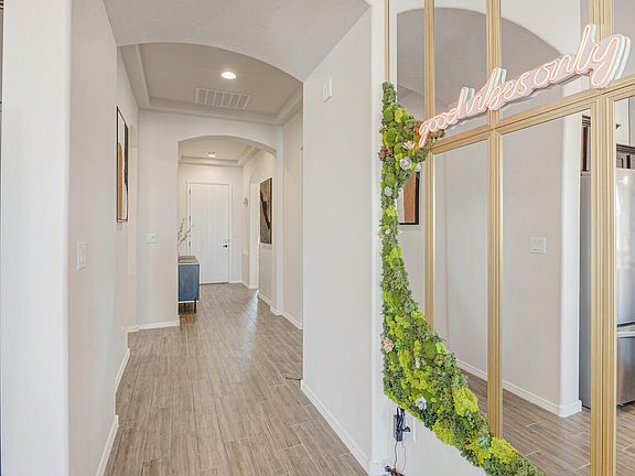 MODERN DESIGN AT ITS FINEST! 3 beds, 2.5 baths, and versatile flex space make this Hakes home the perfect floorplan for easy living. Step inside to experience open layout fused with all the upgrades. Enjoy a serene living space with fireplace, high ceilings, and ample windows to let the sunshine in! Indulge in culinary delights in the huge kitchen, featuring a massive island and walk-in pantry. Retreat to the master suite, complete with spacious closet, double sinks, and a luxurious walk-in shower. Outside, relax in walled-in, xeriscaped backyard with a hot tub and covered porch seating. Nestled in premier Lomas Encantadas community, relish access to top amenities, schools, employment centers, parks and a new shopping center minutes away! Don't miss your chance to upgrade! Call now!