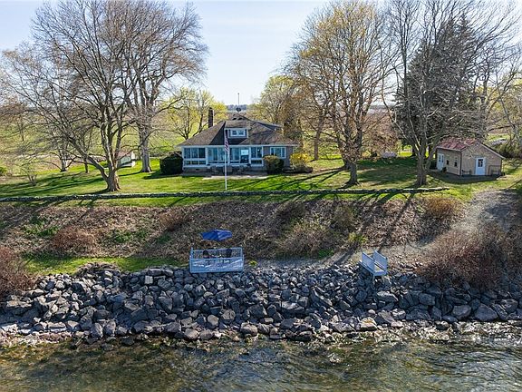 RARE FIND! Charming 4BR 3.5BA waterfront bungalow for sale in Sodus. Welcome to 6857 Lakeview Rd… where lake life and country life intertwine. Nestled between Lake Ontario and an 800-acre fruit farm, this property is truly one-of-a-kind. Experience ultimate seclusion with 230’ of private lake frontage on 1.1 acres with mature trees and expansive views. Spectacular sunrise! Enjoy quiet early mornings and entertain late into the evening on the wrap-around enclosed porch that overlooks the water. Inside you’ll find updates throughout! Remodeled eat-in kitchen with 42” cherry cabinetry, granite counters, heated tile floors and stainless steel appliances. Renovated guest bath & 1st floor primary en suite bath including tiled showers, new vanities & heated floors. Sprawling living room/ dining room with wood burning fireplace and gorgeous refinished pine floors. 2nd floor offers 1 bedroom & full bath plus large open area perfect for rec room, teen suite, fitness center, office, den or additional bedroom. Two car garage. Ample storage throughout including cedar closet, full basement, and two sheds (16x25 barn shed with concrete floor/electric and 10x12 garden shed). Low maintenance vinyl exterior. Central air. Fiber optics internet. Portable generator & golf cart included in sale. Conveniently located just 10 minutes to Sodus Point, 15 minutes to Pultneyville & Williamson, 25 minutes to Webster. Residents enjoy deeded access to 30 acres of protected private parkland across the road. **First Showing Fri, May 2nd at 11am and Offers will be reviewed Wed, May 7th after 2pm. HURRY - SUMMER IS CALLING!!