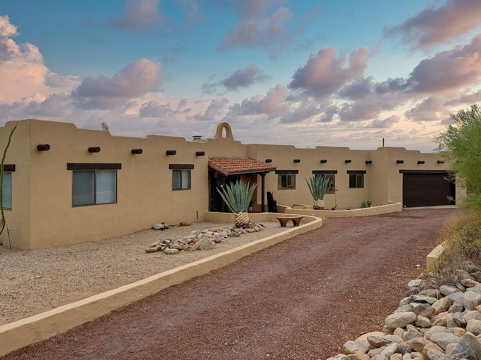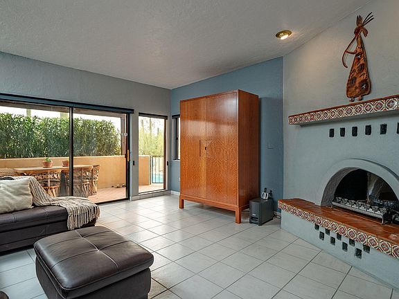 Foothills living with city views from the backyard and Catalina mountain views from the front. This southwest inspired home has a large master bedroom with a custom-built walk-in closet and sitting room with city views and access to the pool and patio. The kitchen opens to the family room and the living room has a double-sided fireplace and opens to the dining room. Patio doors from the living room lead to an elevated covered deck overlooking the naturally landscaped backyard which features a pool and spa and beautiful views. This home is located in the Catalina Foothills school district and is nearby hiking trails and close to shopping and dining at La Encantada.