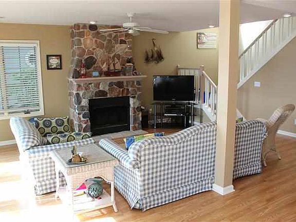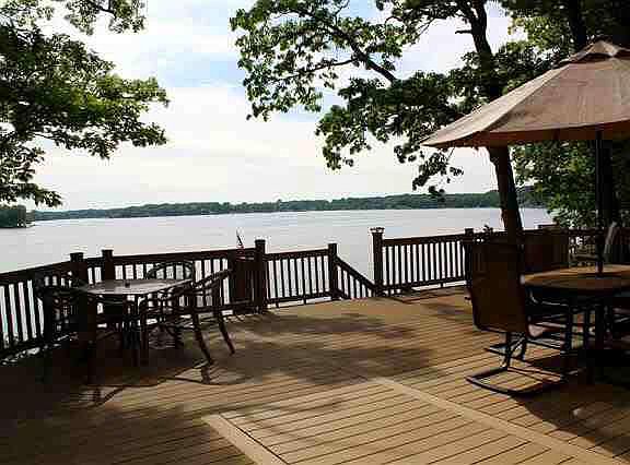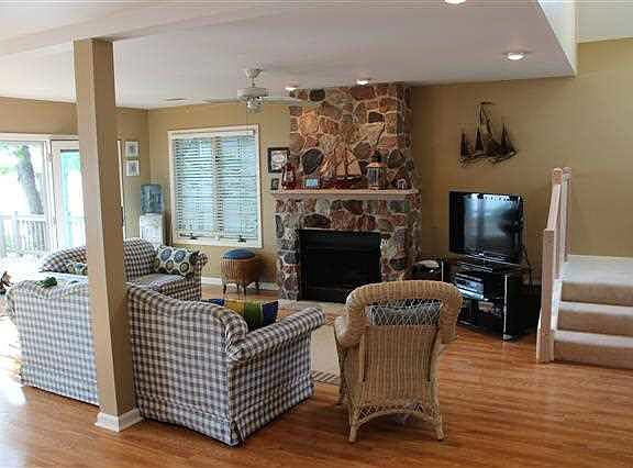 COMMANDING LAKEFRONT VIEWS, 50' OF FRONTAGE, WONDERFUL BEACH, GREAT SWIMMING, BLUFF SETTING (HIGH & DRY), VERY WELL MAINTAINED PROPERTY, OPEN CONCEPT KITCHEN, DINING, LIVING ROOM AREAS (W/SUPERB LAKE VIEWS), NEWER QUARTZ COUNTERTOP, MAINTENANCE-FREE FLOORING, GAS LOG FIREPLACE, 3 BEDROOMS, 2 FULL BATHS, ADDITIONAL FAMILY ROOM, MASSIVE LAKESIDE DECK (APPROX. 736 SQ.FT.), LAKESIDE SCREENED PORCH (APPROX. 180 SQ.FT.), 2 CAR GARAGE, AMPLE PARKING, HISTORICAL FIELDSTONE SEAWALL ADDS TO THE CHARM OF THIS SETTING. Swimming Beach Ceramic Tile Swimming Beach