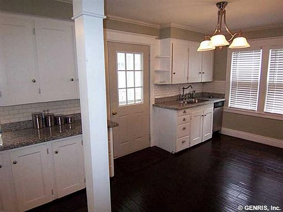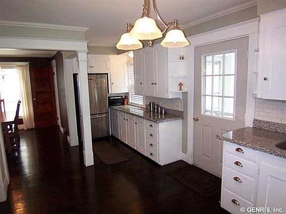 Charming 3 bedroom 1.5 bath Colonial situated on quiet tree lined street. Large kitchen with granite counters & tons of cabinets, formal dining room, huge living room, 1st flr half bath, 3 nice size bedrooms and spacious bathroom on 2nd flr, Large front enclosed porch, rear deck with gazebo & hot tub, Newer tear off roof, Newer furnace & central air,150 amp electric service, newer hot water heater, Detached 2 story garage/barn is ideal for storage or workshop, This home is in move in condition!! Easy commute to Buffalo,Rochester & the NYS Thruway. LOADS OF CHARACTER!!!