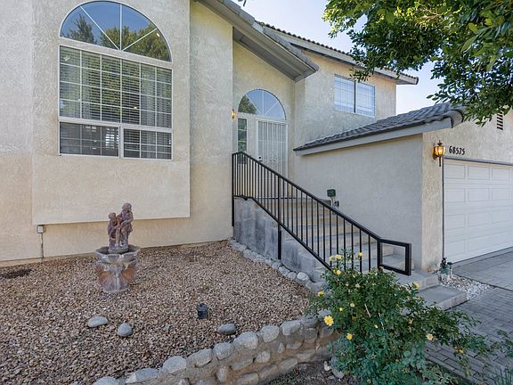 A Cathedral City Dream pool property with PAID off solar panel! The home has updated paint and flooring! Amazing bright floorplan with 4 bedrooms and 2.5 bathrooms. Huge driveway, wide enough for RV parking as well. Upon entering the home, you are greeted with laminate flooring, thick baseboards, high ceilings, recessed lighting, central AC & heating, plus lots of storage space throughout. The first level has a convenient laundry room, 2 bedrooms and 1.5 baths. The second level is where you have the living room featuring a beautiful fireplace as the main focal point. It also features amazing views off the deck! On the third level is the remodeled NEW kitchen complete with flooring installed about 3 years ago, along with sleek Quartz countertops, a mosaic backsplash and is equipped with stainless steel appliances. The kitchen has a breakfast bar and a cozy dining area as well. The dining area has a double door that leads you outside to a deck patio that gives you breathtaking mountain views. The third level also has 1 guest bathroom and 2 bedrooms. Bedrooms are spacious, offering ample closet space. 2 out of 4 bedrooms has its own private bathroom located on the first floor. Home has an attached garage that is equipped with central AC & heating. It is currently being used as a playroom. Enjoy entertaining or unwinding in a large yard that has a salt watered heated pool and Jacuzzi! This is a private yard with a covered patio and a spacious lawn that is great for children or pets. Perfect for a New home buyer, a retirement home, or a vacation home! Just minutes away from Downtown Palm Springs, entertainment, shopping, casinos, restaurants and more!