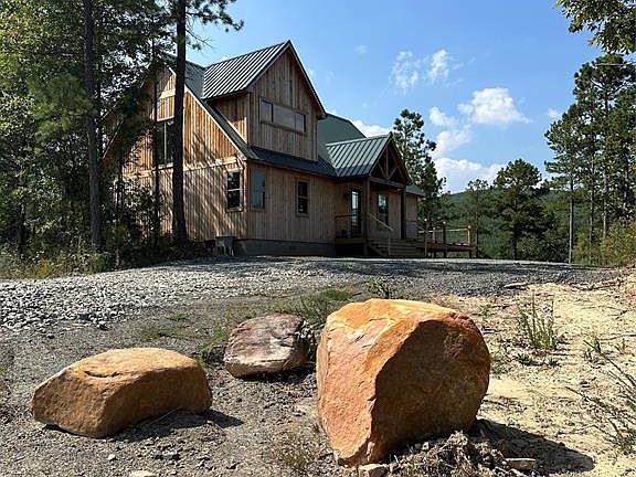 Welcome to your dream getaway in Honobia, Oklahoma! Nestled in the scenic mountains , this charming 3 bed, 2 bath cabin offers the perfect blend of rustic charm and modern comfort for an unforgettable mountain retreat. The cabin is situated on a wooded lot, surrounded by the natural beauty of the South Eastern Oklahoma mountains. A large front porch could be welcoming you and it has a perfect spot to enjoy your morning coffee while taking in the breathtaking views. As you step inside, you'll be greeted by a cozy and inviting living/kitchen/dining area. Vaulted ceilings with exposed wooden beams add to the rustic charm, large windows frame picturesque views of the mountains, allowing you to connect with nature . The fully-equipped kitchen features modern appliances, granite countertops, and ample cabinet space. It's the perfect space for you to enjoy with family and friends.