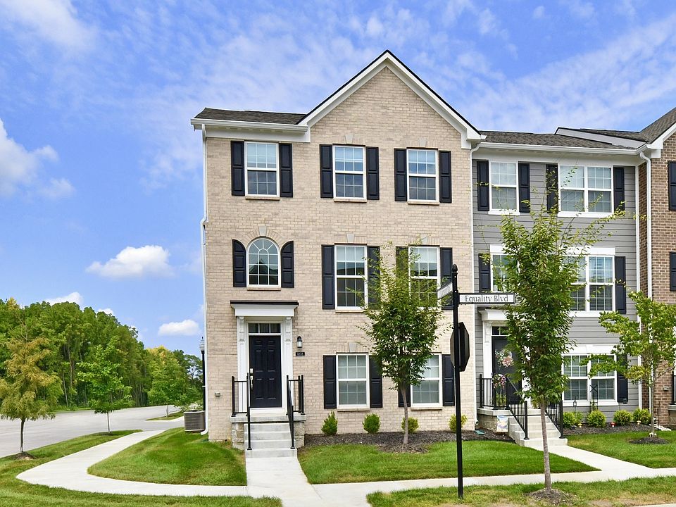 You'll love this 3-bed, 2-full bath, 2-1/2 bath, 2-year-old end-unit townhome nestled in East Carmel's Windward at Legacy community! The lower-level living space features a convenient wet bar with abundant cabinetry, stone countertops, and subway tile backsplash. A half bath conveniently located on the lower level as well. The open-concept main level features a spacious living area with a gas fireplace, a flexible space for dining or office use, and abundant natural light. The spacious kitchen showcases a large island, abundant cabinetry, stone countertops, and stainless steel appliances including gas stove. A generous deck and half bath complete the main floor. Upstairs, you'll find the primary bedroom with en suite bath, tray ceiling, and walk-in closet, along with two additional bedrooms, one full bath, and a laundry room with washer and dryer included. All windows feature easy-to-use cellular shades.