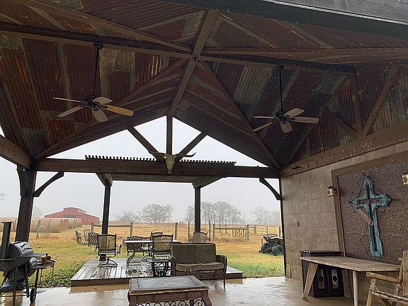3 bedroom 2 bathroom home on 15.47 acres. Covered pavilion with side garage for outdoor equipment and large barn. Pond on the property as well. Water well