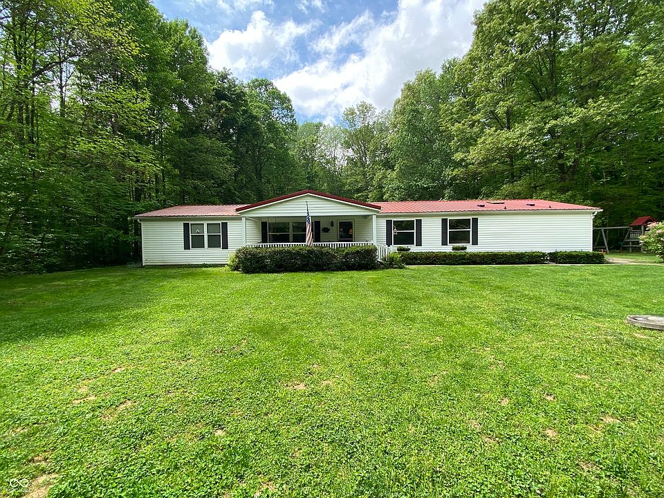Escape to your own secluded sanctuary nestled within 6.67 pristine acres of tranquil woodlands in Brown County. Welcome to this spacious 3-bedroom, 2.5-bathroom manufactured home, offering the perfect blend of modern comfort and natural serenity. Step inside and be greeted by the expansive living space in this 2356 sq ft home. Strategically placed skylights provide natural light. The semi open-concept layout seamlessly connects the living, dining, and kitchen areas, providing ample space for relaxation and entertaining. The Kitchen has an abundance of cabinets, a convenient Island with bar seating and a large breakfast area. The large living Room and Family Room accommodate those large gatherings with friends and family. All bedrooms are large and have walk in closets. Plenty of opportunity for you to update to suit your taste. Outside the vast 6.67-acre property which backs up to the Yellowwood State Forrest, offers endless possibilities for outdoor recreation and relaxation. The 30 x 60 pole barn comes complete with concrete floor, power and a large wood burning stove. The property is conveniently located 10 minutes from both Nashville and Morgantown. In your new home, you will be close to amenities when you need them or you can simply bask in the tranquility this property has to offer. Schedule a showing today!