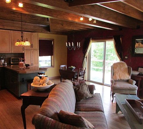 A rare find - unique contemporary home on 97 acres w/wrap-around deck on 3 sides w/patios underneath. An above ground pool. Very private setting; many wildlife sightings. Main level has bamboo flooring throughout & an open floor plan at LR, DR & Kitchen. Nice lighting. Ceiling is vaulted with T&G pine. Two sliding doors give access to front deck w/views. Eat-in kitchen has bar area, SS appliances included, pot rack @ island; granite c-top. Large Master BR & 3/4 bath w/access to back deck. Laundry w/chute from 2nd floor. 2nd floor has walkway to loft, large bedroom & 3/4 bath. Lower level has partially finished kitchen & bath w/unfinished 18x16 FR w/Harman wood stove. 3 heat systems-outside furnace, oil, or heat pump. Large 60x30 pole-building garage w/loft, 2 tall doors-possible business.
