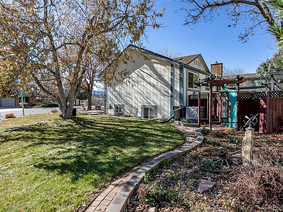 Wonderful home in the desirable Columbine Knolls North community. This four-bedroom, three-bathroom haven offers 2784 total square feet on .23 acres. Step into an inviting space characterized by openness, vaulted ceilings, and an abundance of natural light filtering through six newly installed skylights. The kitchen boasts granite tile, tasteful backsplash, eating space with built-ins, and ample cabinet storage. The inviting and bright living and dining rooms are perfect entertaining spaces. The expansive family room is the focal point, including a wet bar with stylish backsplash, a charming brick fireplace, and vaulted ceiling with skylights that enhance its allure. Upstairs are three bedrooms, including the primary with walk-in closet, two spacious secondary bedrooms and two full baths. All with great mountain views. The luminous garden-level basement, featuring a versatile space with a Murphy bed, egress window and walk-in closet, can be a 4th bedroom or bonus room offering flexibility for various needs. The oversized two-car garage is not merely a parking space, but a functional workshop equipped with cabinets, 220 EV outlet and plenty of space. Positioned on a thoughtfully landscaped corner lot, outdoor living is elevated with an array of patio spaces, a storage shed, and gated RV parking. The large front patio affords breathtaking views of the mountains and open space, creating an idyllic setting. Incredible location! Close to Clement Park, Downtown Littleton, light rail, shopping, dining, parks, trails and more. Additional features include a high-end stone coated steel roof and central vacuum for effortless maintenance. You will not be disappointed.