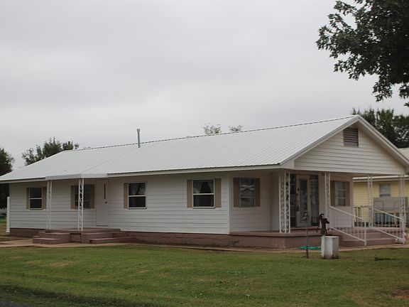 Welcome to Camargo, OK a quiet and friendly community in NW Oklahoma. This one owner home is situated on a corner lot and has multiple improvements. The home offers 3 bedrooms, 1.5 baths, living room, kitchen, and laundry area. The home has new carpet, linoleum, updated HVAC, updated electrical including breaker-box, wiring, and some fixtures. The home has 3 covered porches to enjoy Oklahoma's weather. Additionally there is single carport and a garage with workroom. The garage has all utilities & formerly served as a laundry room. Both the home and garage are protected with metal roofs. A large below ground storm shelter will give you peace of mind during inclement weather. The shelter has electricity and is clean and dry!