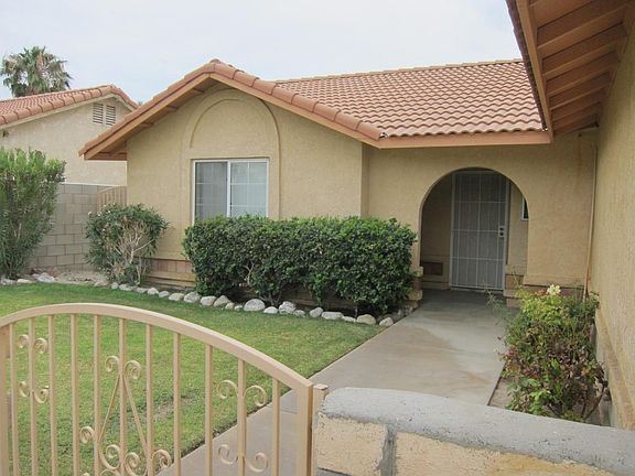 Two bedroom, two bathroom house in Cathedral City. New paint throughout. This home features cathedral ceilings with fans, tile flooring, a courtyard entrance, and a large fenced backyard. Two car attached garage with laundry connections. Owner maintains landscaping. One small pet OK subject to owners approval and additional deposit. Offered at just $1345 per month on an annual lease. Please call the property manager at 760-895-1430 for more information or to schedule an appointment.