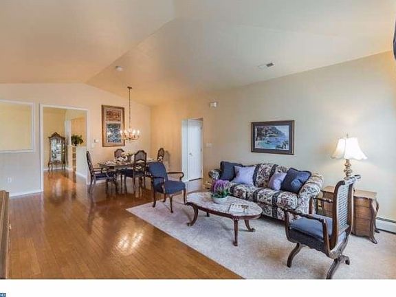 Welcome to Flowers Mill and this spacious Thornhill Villa home with open floor plan and voluminous ceiling throughout. Enter the hardwood foyer to a great room for living and dining areas, featuring cathedral ceiling, new carpet in living room, and hardwood floor and decorative crystal chandelier in the dining room. The eat-in kitchen, also with hardwood floor, offers abundant bevel-edged counters; abundant upgraded 42-inch oak cabinetry with decorative hardware, pull-out shelves, and 2 pantries; new stainless sink, new gas stove, new built-in microwave, decorative backsplash, and recessed lighting. A spacious family room, open to the kitchen, also offers cathedral ceiling, new neutral carpeting, built-in bookcase, and doorway to the sunroom. This sunroom has new neutral carpeting, 2 closets, wrapped with 5 double windows, and an exit door to a private patio. The laundry room, completed with GE Profile washer and dryer, cabinetry, and utility tub, leads to the 2-car garage and finished loft. The loft serves as a 3rd bedroom, grandchildren welcome, with private full bath. Worth mentioning: comfortable hot-water baseboard heat, newer hot water heater (2014), sprinkler system. Meet friends at the awesome clubhouse offering indoor and outdoor pools, fully-equipped fitness center, ballroom, game rooms, clay-court tennis, and loads of activities. Come enjoy the good life!