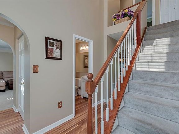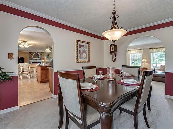 Absolutely beautiful! Dramatic 2 Story Entry! Eat-In-Kitchen with Bay Window, Island, All Appliances and gorgeous New Granite Counters! Corner Fireplace in the Family room with crown molding! The first floor Great Room and Dining Room are large enough for those family gatherings and are accented with crown molding! The Owners Suite is spectacular with a ceiling fan, 2 walk-in-closets, double sinks, large soaking tub and separate shower! All bedrooms have ceiling fans and ample closet space! The Lower level is the perfect game day man cave complete with Franklin Stove, Full Bath, Kitchen/Bar and walk out access to your 45x22 Patio with a Hot Tub! The 26x14 Covered Deck with stairs looks out over the park-like level yard with a wooded border! 1st Floor Laundry with Laundry Chute, Newer Roof, Attic Access, 14x10 Shed, Updated Baths, 21 foot storage room with shelving, 2 Car Attached Garage with Storage Cabinets, Level Driveway and beautifully Landscaped all around with mature trees!