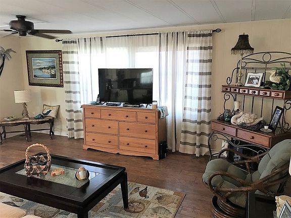 686 Harbor Circle JUST REDUCED to $17,500. This amazing home is partially furnished. This home features: ? Gorgeous open floor plan through the main living area ? 1296 sq. ft. = the front lanai and a side screened lanai ? Decorated flawlessly with a Florida appeal ? New laminate, carpet and vinyl ? New tiled countertops and vanities ? Freshly painted ? New window treatments ? 1 Block from Manatee Pool and Hall ? Very close to the Picnic Pavilion and private fishing pier ? Very near the south side fitness room ACT FAST & CALL TODAY!! Don't forget to ask about the FINANCING OPTIONS available on this home and our Whole Home Warranty Program!!! Colony Cove is an age qualified (55+) five-star resort community of manufactured / mobile homes. The "Cove" boasts 5 clubhouses, 5 heated pools, a riverfront pavilion and private fishing pier, a private marina, a fenced dog park (very pet friendly), tennis, shuffleboard, new pickleball courts, 2 new fitness rooms, 24 hour patrol, clubs for every interest, and much more. There are daily planned activities throughout the park. Bottom line, if you get bored here, it's your own fault!! The lot rent in Colony Cove is based on the homes' location. While the monthly rent may not be the lowest around, it's by far the best value for the money. Not only does the monthly rent cover all of the amenities of the community listed above, it also covers almost all other monthly expenses such as; water, sewer, trash pickup, all property taxes, cable, lawn maintenance. . .pretty much every monthly expense except electricity. The current lot rent on this home is estimated at $784 per month. Schedule a stay in one of our Guest Houses to try out the “Cove” to see if you will like it.