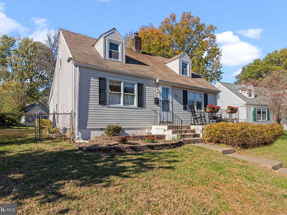 Enter this charming Cape Cod located in Morrisville Boro and you will find a well laid out home featuring fresh paint and hardwoods throughout. Coming in the front door the sun filled living room with bead board wainscoting is to your right. Head to your left and enter a spacious kitchen and breakfast room with loads of cabinet space, granite counter tops, slide out pantry, stainless steel appliances and conveniently located built-in laundry closet. Off the kitchen at the back of the home is a large, airy family room with vaulted ceilings, lots of windows and a sliding glass door that leads out back to a fully fenced yard with a slate patio great for back yard entertaining. A playhouse and storage shed are two additional backyard features. The bath has beautiful marble floors and half walls along with a fresh white tile tub surround. Rounding out the 1st floor is one of the three bedrooms. Upstairs you'll find two additional nice sized bedrooms, perfect for office space or nursery. There's basement that has room for additional storage and workshop area. Don't miss out on this one!